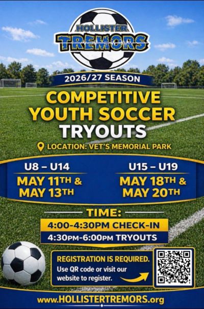 Upcoming Hollister Tremors’ Competitive Youth Soccer Tryouts: